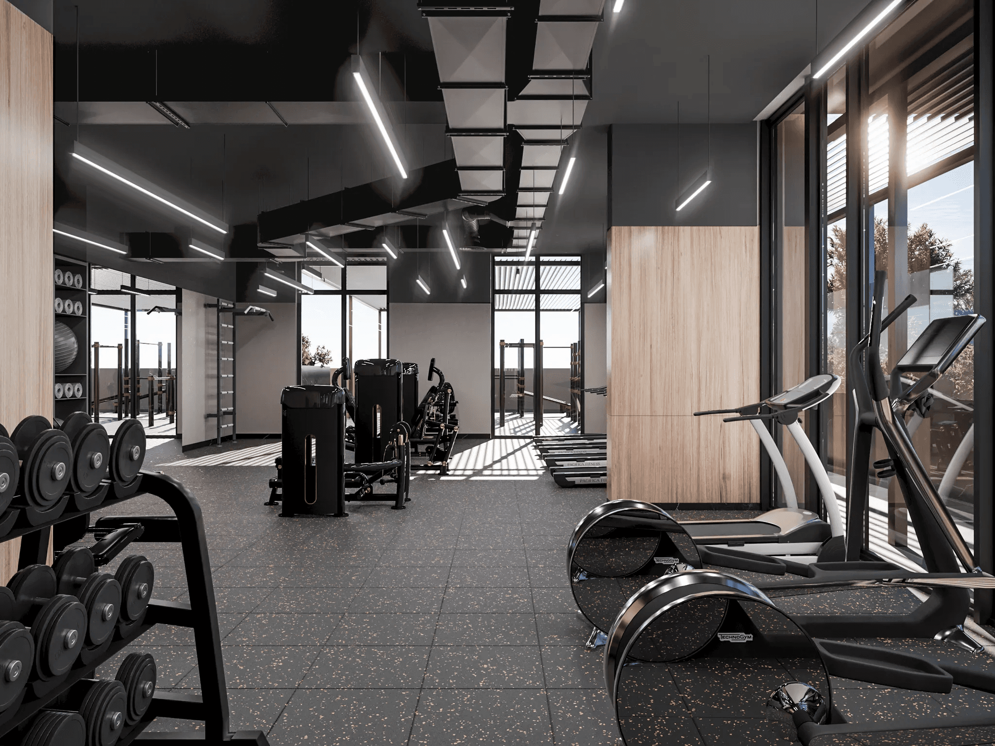 • Community-oriented facilities: coffee shop, coworking space with 360° views, gym, yoga studio